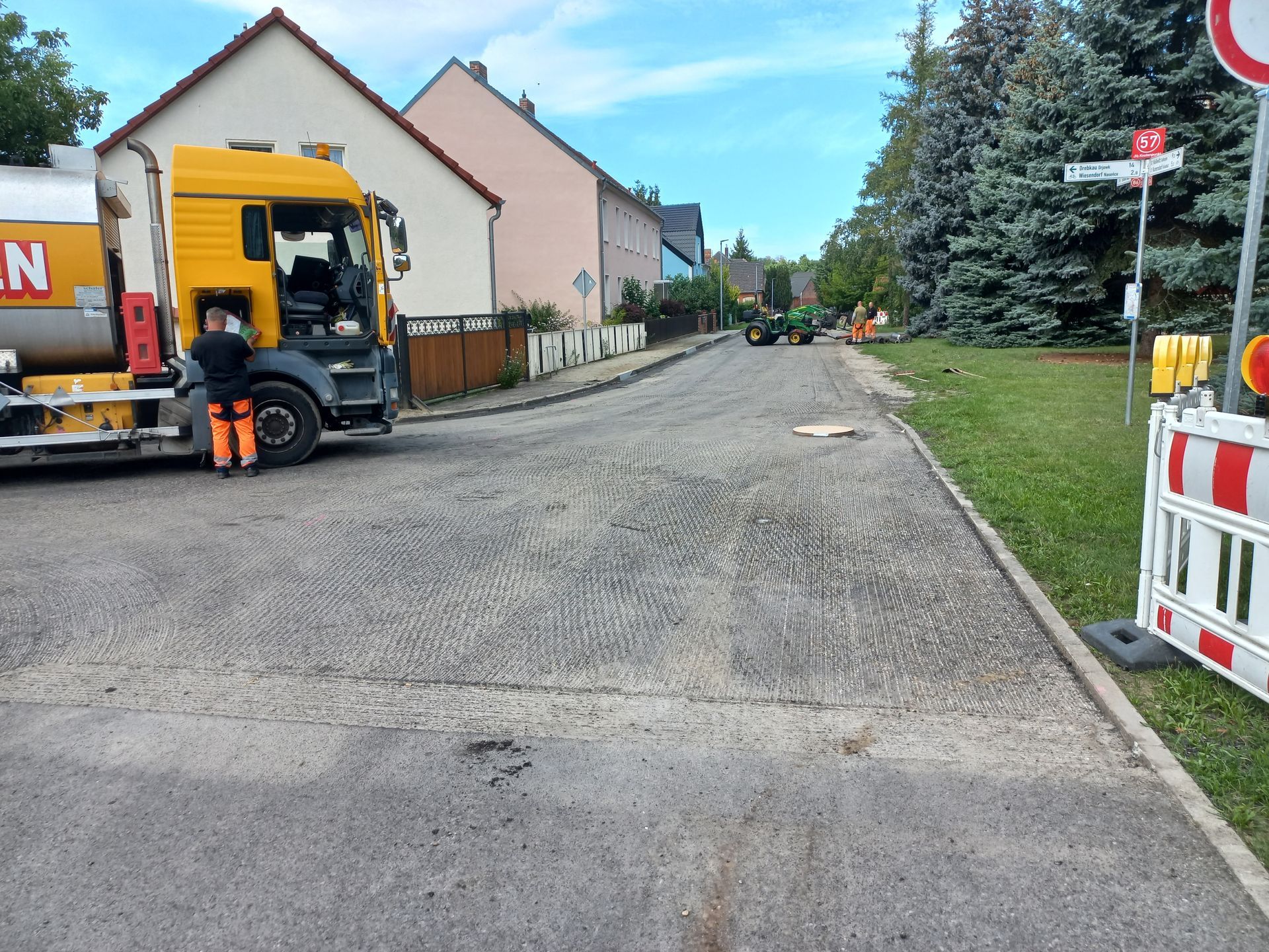 Als Anschluss kann die neue Asphaltdeckschicht in mindestens 5 cm Stärke ohne nochmaliges Vorspritzen verlegt werden.